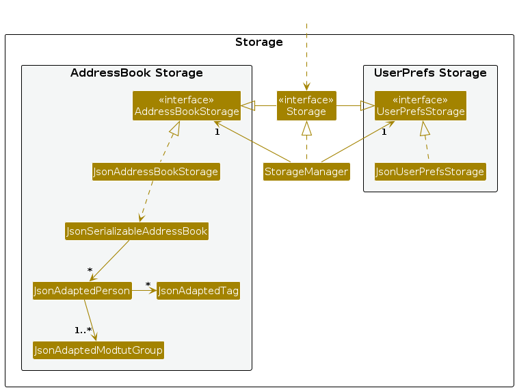 AddressBookStorage and UserPrefStorage, which means it can be treated as either one (if only the functionality of only one is needed).Model component (because the Storage component's job is to save/retrieve objects that belong to the Model)Classes used by multiple components are in the seedu.address.commons package.
